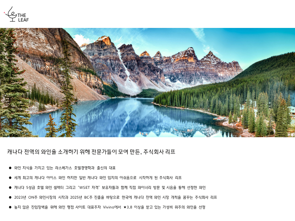 청정지역 캐나다 산 와인은 오직 리프에서만!